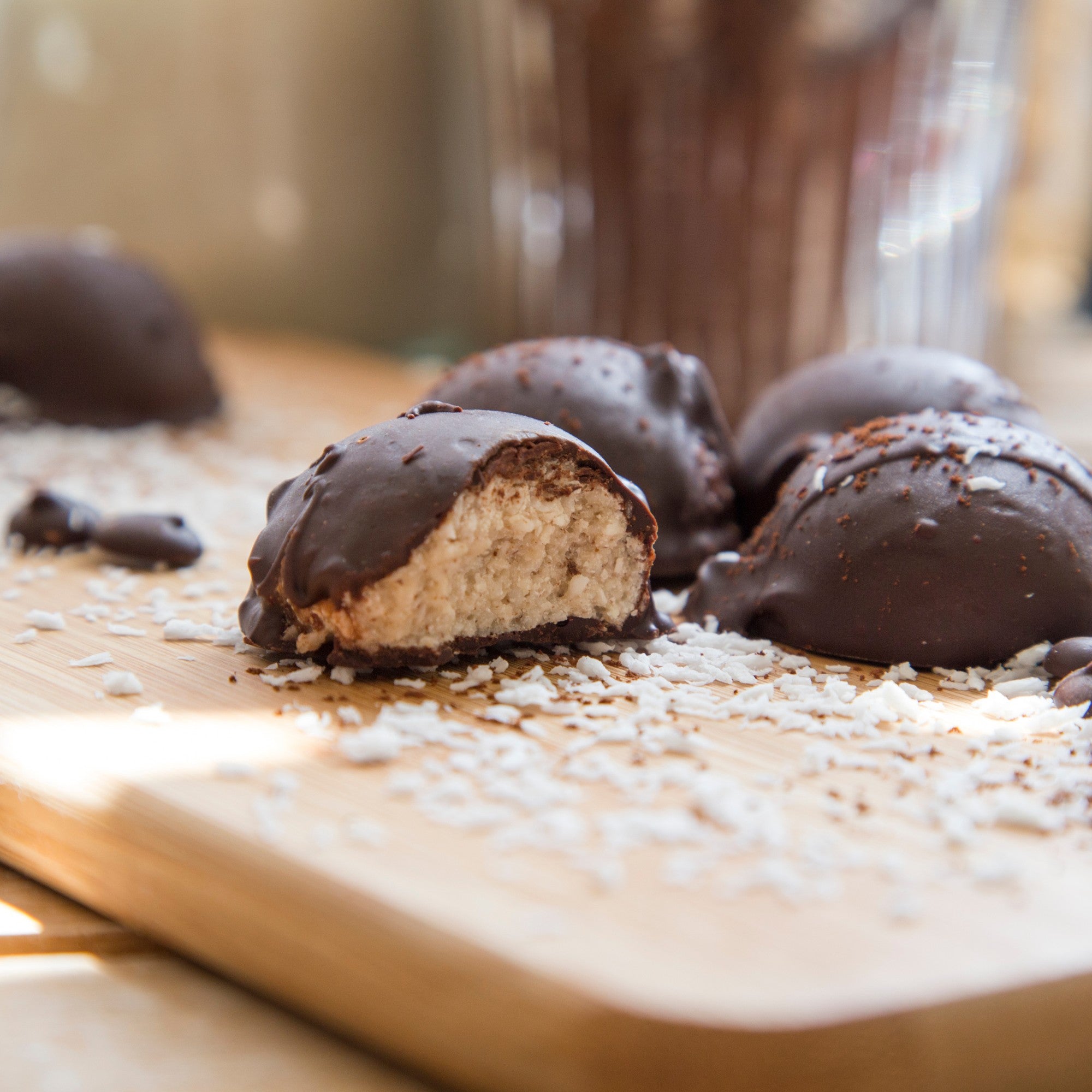 Our Coconut Bites are a rich clean bounty! Packed with cold pressed organic coconut oil and pure almond butter, encased in dark Belgian chocolate. Massive taste & Super Nourishment.... The Perfect Snack any time of day!